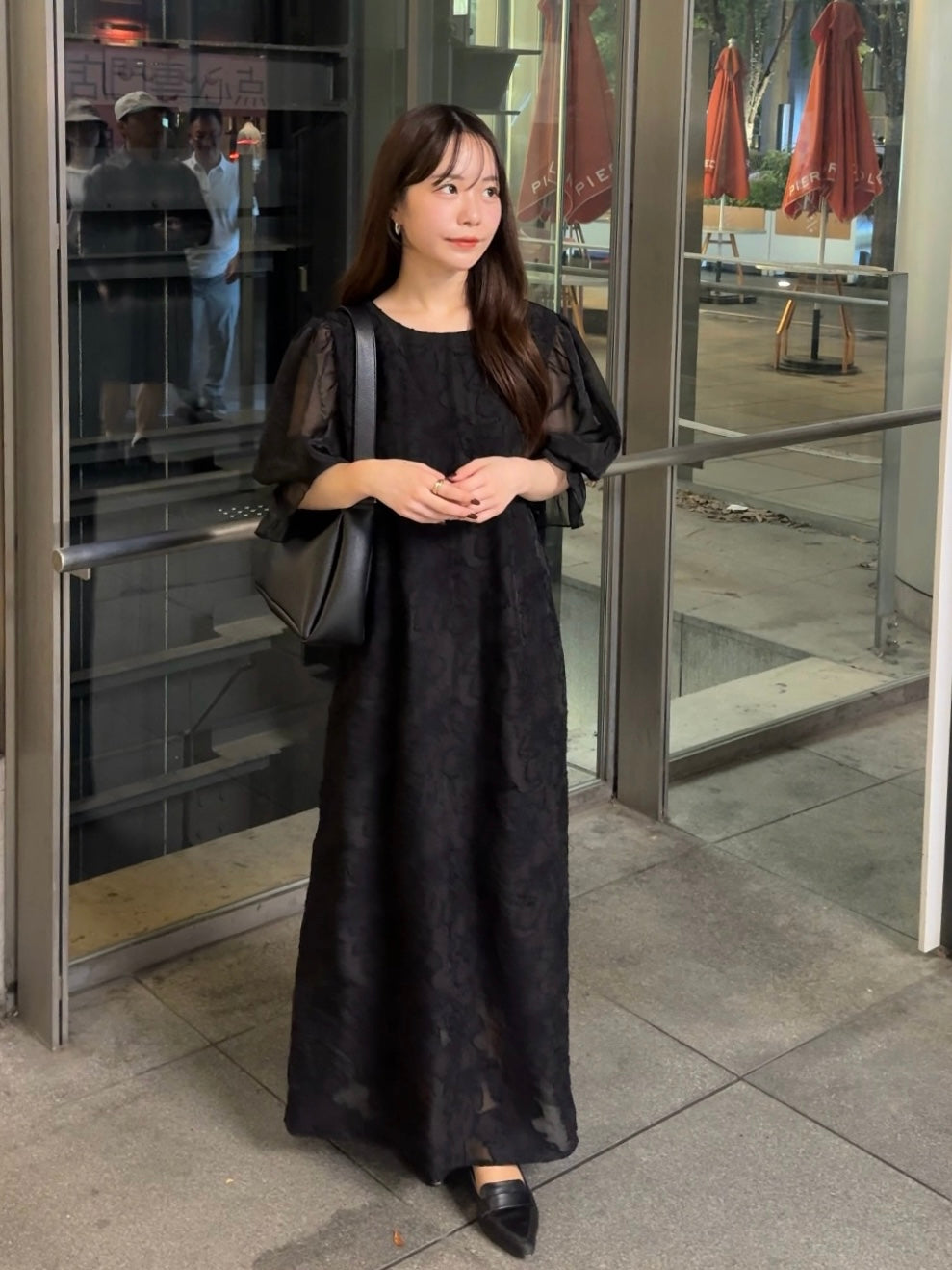 お呼ばれにもおすすめなブラウンのワンピで綺麗めカフェコーデ。 透け感のあるオーガンジースリーブがポイント。