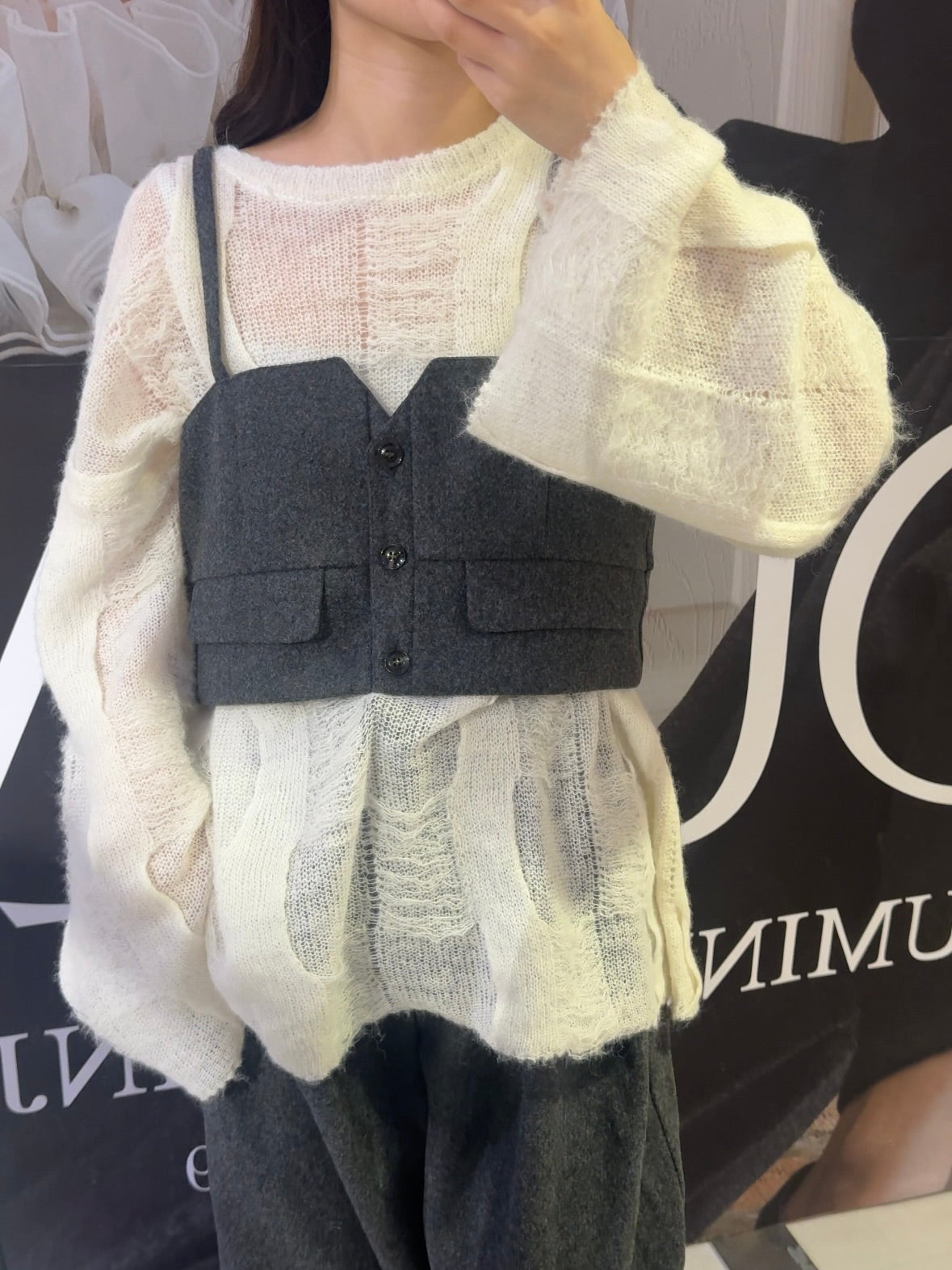 ウールライクなビスチェを使用した、セットアップコーデ。