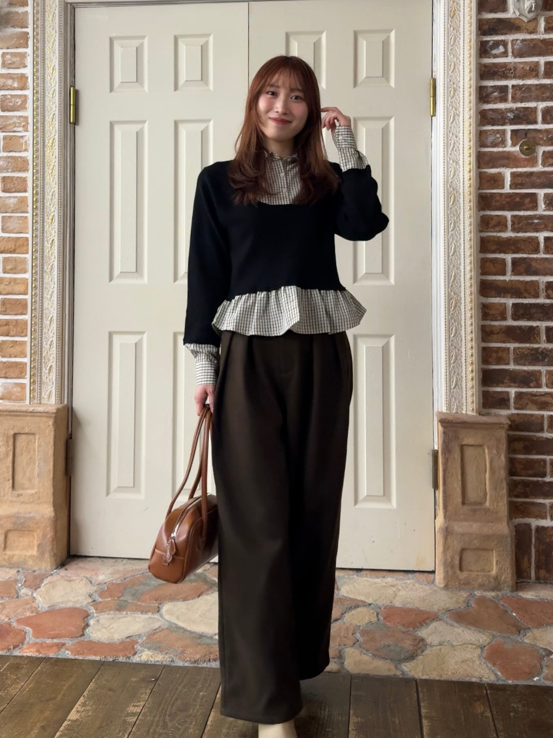 デイリーにもお出かけにもぴったりなパンツコーデ。1枚でレイヤードスタイルが叶うドッキングニットがお気に入り。