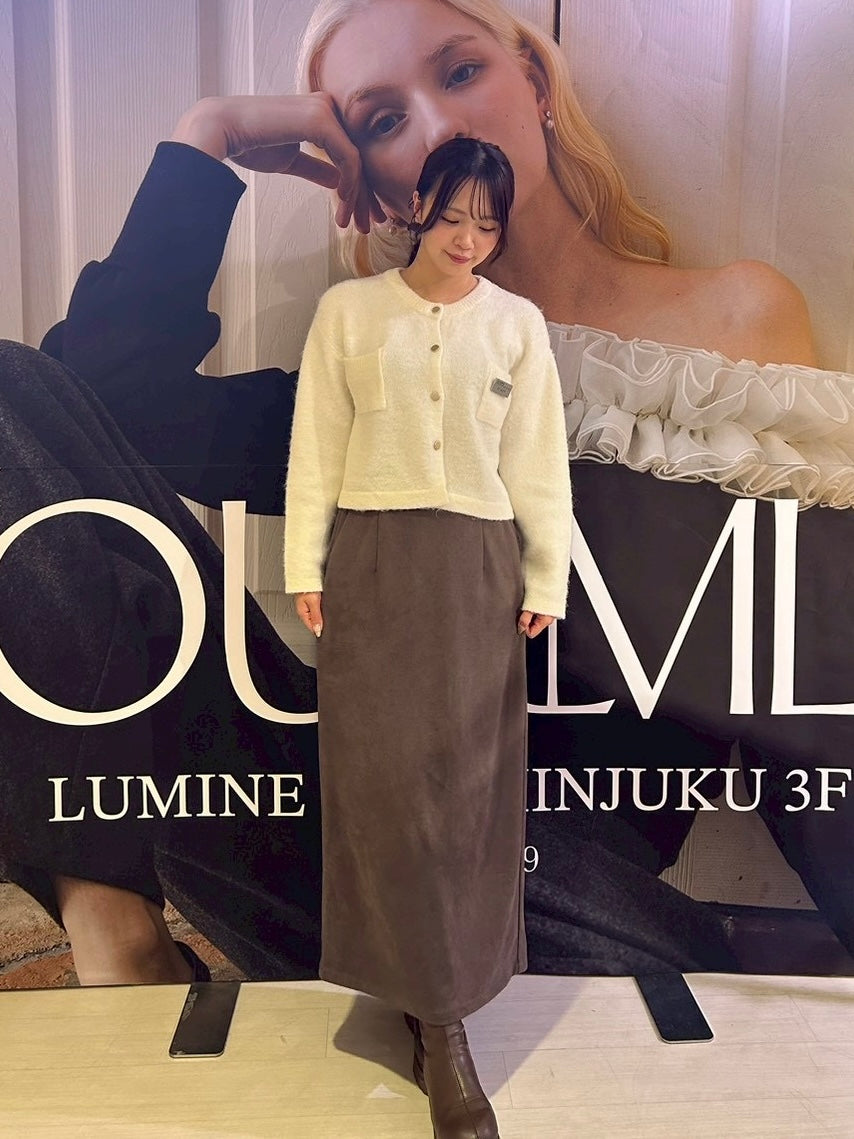 綺麗めなカーディガンを主役にした、スカートコーデ。